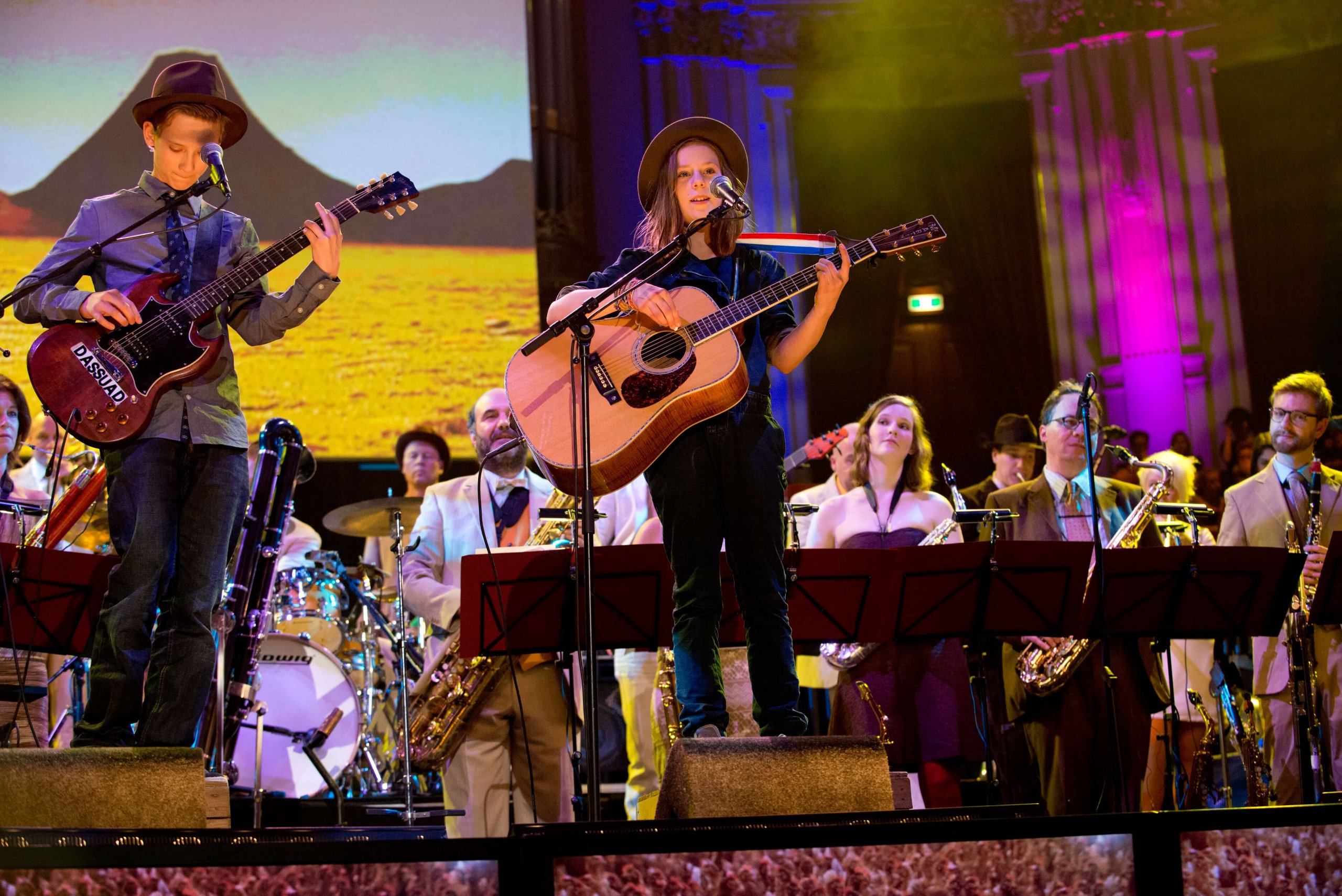 Nederland, Amsterdam, 31-12-2013 Nieuwjaarsconcert van het Nederlands Blazers Ensemble: De Waan van de Dag. Uitgezonden door de VARA. Gasten o.a. Theatergroep Hotel Modern, zangeres Fadia Tomb El-Hage, dansers Liam O' Callaghan en Ellen Houck, jonge componisten en jonge dichters. Photography: Remke Spijkers